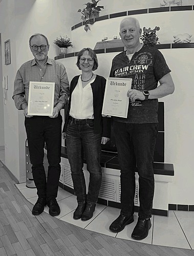 Besonders erfreulich war die erfolgreiche Teilnahme mehrerer Aktiver an den Dl -/D2-Prüfungen. Außerdem wurde Linus Neugebauer Verbandssieger beim Verbandsentscheid „Concertino 2026" in Bamberg. Nach über 50 Jahren aktiver musikalischer Tätigkeit verabschiedeten sich Klaus-Peter Grief und Gisbert Hander in den wohlverdienten „musikalischen Ruhestand". Beide wurden zu Ehrenmitgliedern der Stadtkapelle Ostheim ernannt.