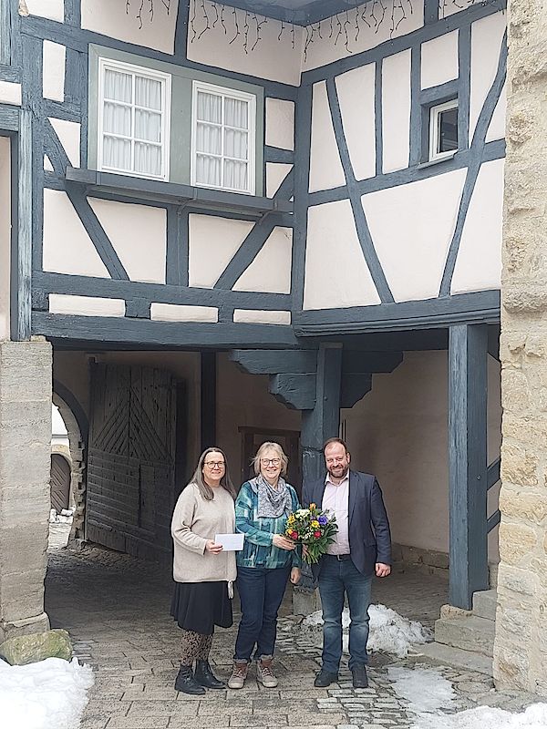 V.l.n.r. Susanne Orf, Vorstand Kommunalunternehmen Tourismus und Marketing Ostheim, Jubilarin Birgid Heun und Ostheims 1. Bürgermeister Steffen Malzer. Foto: Franziska Friedrich