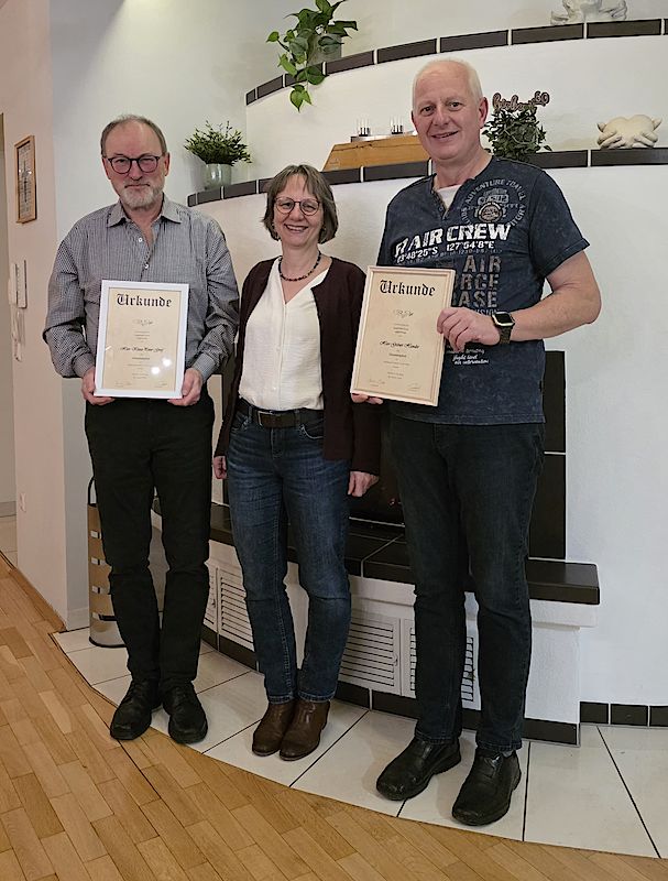 Klaus-Peter Grief (Ehrenmitglied), Monika Weber (1. Vorsitzende), Gisbert Hander (Ehrenmitglied).