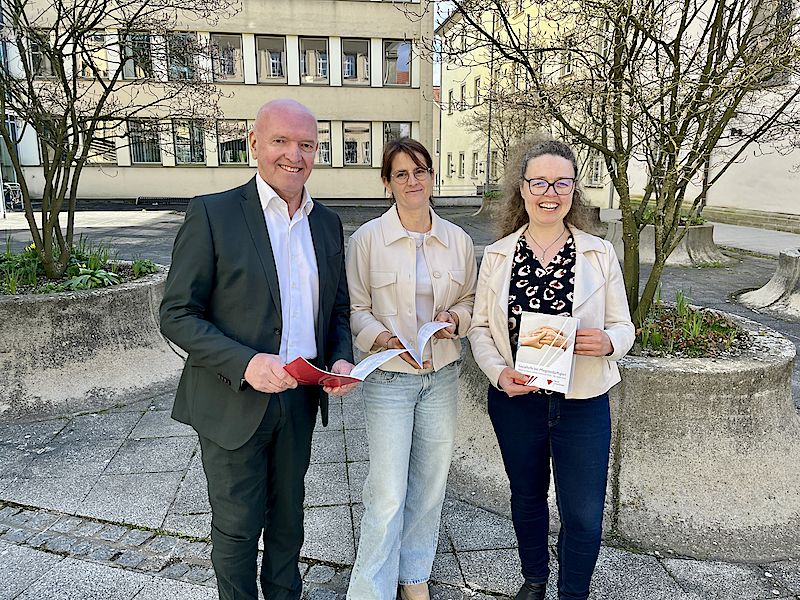 Landrat Thomas Habermann und daneben Sabine Wenzel-Geier (Leiterin Pflegestützpunkt Rhön-Grabfeld) begrüßten Kerstin Sendner (rechts) vom Bezirk Unterfranken, die zum Thema „Hilfe zur Pflege“ berät.