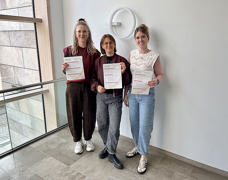 Von link: Sandra Wimmer, Sabine Wenzel-Geier und Eva Holzhausen vom Pflegestützpunkt Rhön-Grabfeld präsentieren die Vortragsreihe Pflege 2026.